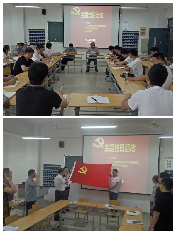 为进一步激励广大党员坚定爱党、信党、跟党走的理想信念,始终牢记职责使命。近日,汽车工程系党支部组织党员开展“重温入党誓词践行庄严承诺”主题党日活动。
