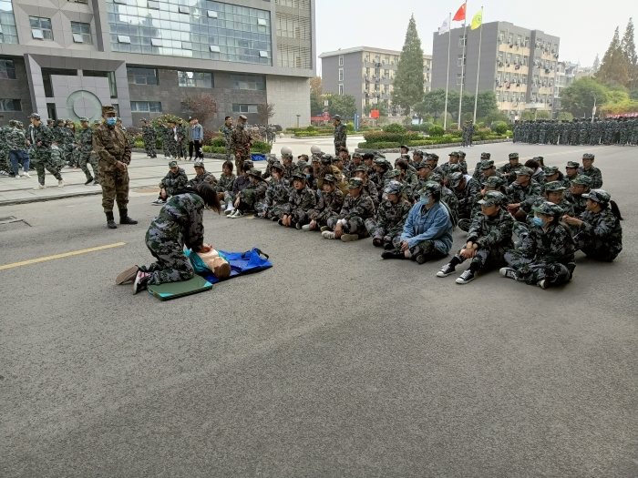 为提高2020级新生应急救护技能,在意外伤害发生时能及时正确地进行救助,交通与安全公司在军训期间开展了新生应急救护训练。
