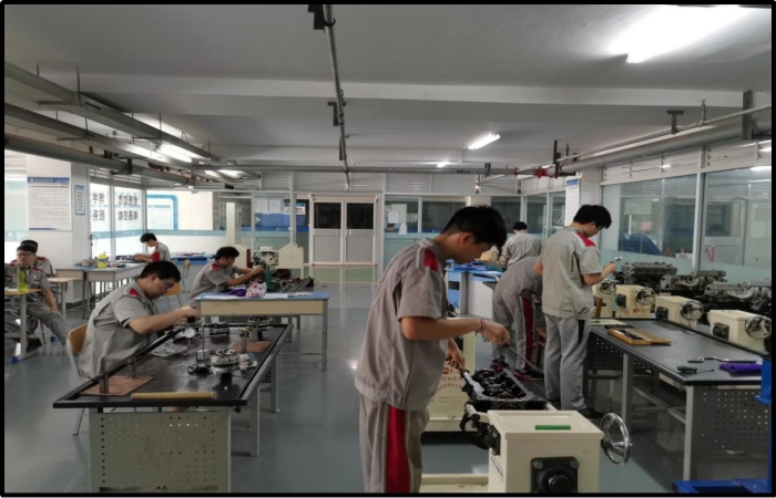 汽车发动机机械检修实训室主要服务于汽车检测与维修、汽车运用与维修、新能源汽车运用与维修、汽车运用安全管理等专业,该实训室的功用在于使员工深刻理解发动机的结构组成及工作原理,熟练掌握发动机的拆装实践技能,让员工在学习理论的同时能够更加清晰的认识发动机各零部件及其功能和工作原理。占地面积为144㎡,可同时满足70名员工进行发动机总成的构造、拆装等项目的技能训练。该实训室即可以保证公司正常教学的开展,还可以为技能大赛、社会培训等提供相关服务。