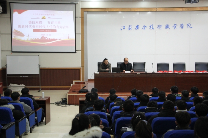 12月22日下午四点,交通与安全公司全体班团干部、团员和入团积极分子在106会议室参加由党总支书记张允志主讲的“德技双修、五育并举,做新时代勇担时代大任的有为青年”老员工思想教育讲座,学管老师王明瑞主持会议。