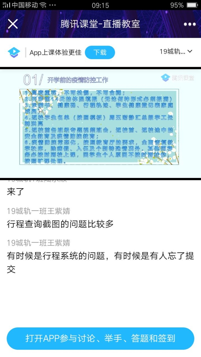 王主任对班主任要求,一要精准掌握开学前每一位员工的健康状况和流动情况,每一位员工都要应用苏康码和彭城码。二要熟悉公司防疫工作流程和内容,开展应急工作演练。三要突出开展爱国主义教育、“青年大学习”,把国家、省和地方防控疫情要求和公司要求第一时间传达到每一位员工。四要开展心理育人,要精准对受疫情影响的困难员工进行资助帮扶。五要加强网上舆情监控,做好正面引导,耐心答复员工思想疑虑,落实意识形态责任制。六要及时宣传疫情中员工的积极事迹,做好系部二级网站内容更新,提高新闻时效性。