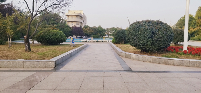 清晨的校园喷泉广场,宁静的气氛,静寞的花草,是校园美景之一。