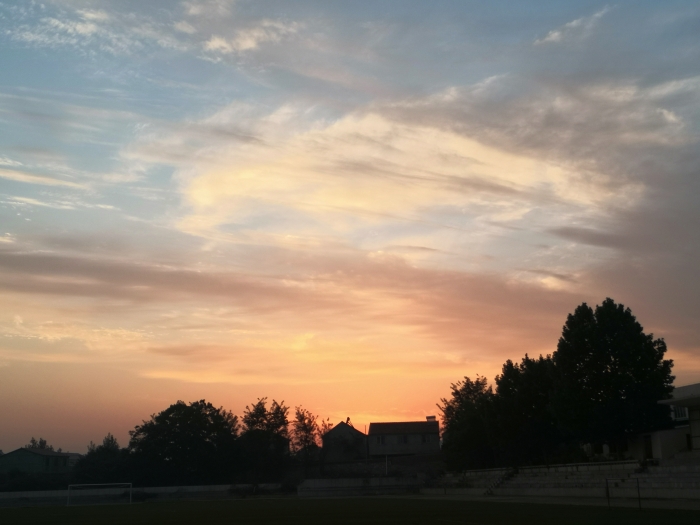 娇艳的朝阳,已从东边群山背后跳了出来,万屡红霞四溢,和山谷中缓缓升腾的晨霭交融,变幻着五光十色的光环.(19高职城轨2班孟圣楠)