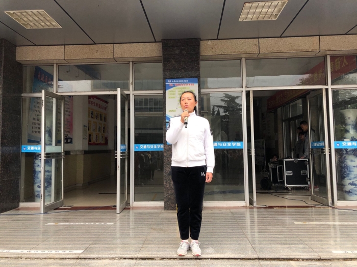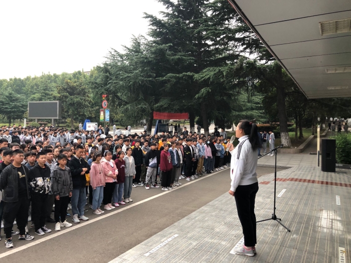 10月12日早,交通公司在教学楼下召开第六周晨会教育,学管主任王冬萍做主题发言。