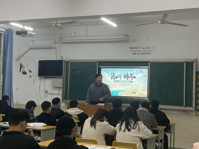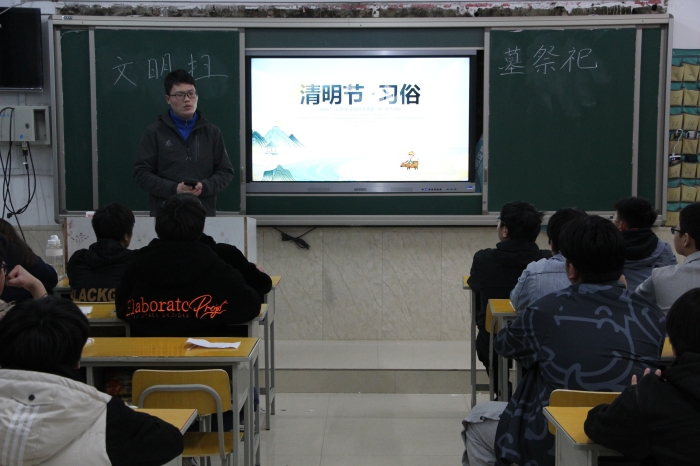 为了让同学们了解清明节传统文化,增强传统文化的认知,过一个文明健康的假期。交通与安全公司全体班主任于3月31日晚自习带领全体同学,举行以诵清明诗歌、扬民族文化暨落实孙书记节前六大工作要求为主题的班团课。