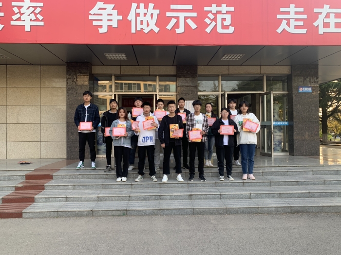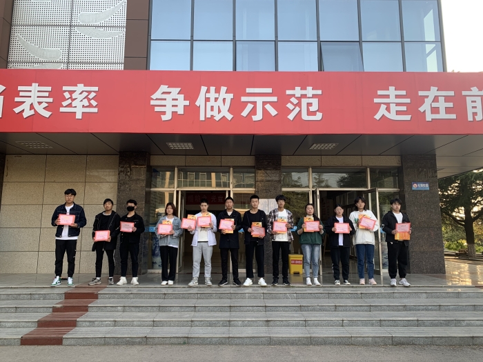 2021年4月19日下午,在教学楼前,对“学习标兵”和“学习型宿舍”进行表彰。