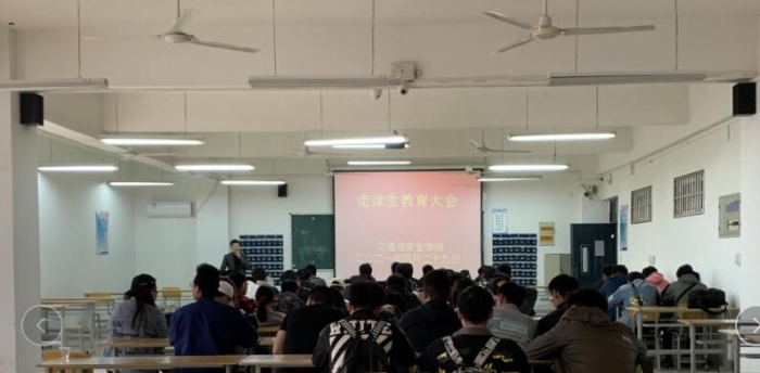 为进一步做好走读生的安全教育工作,4月29日下午,我院在教一楼508教室组织召开了走读生安全教育会议,辅导员潘彬老师主讲,全院69名走读同学参加。