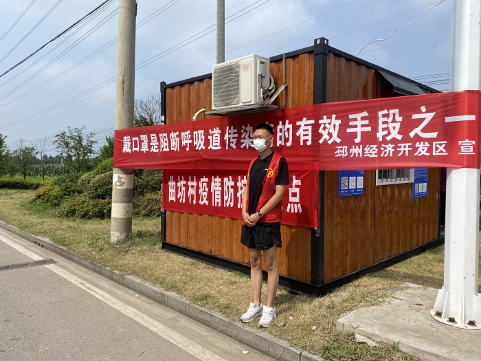 疫情防控,志愿先行。19城市轨道交通运营管理二班的刘行,在这次疫情中,积极参与防疫活动,在邳州经济开发区曲坊村做外来人员登记,测量体温,他用实际行动奉献青春力量,为社会做贡献。