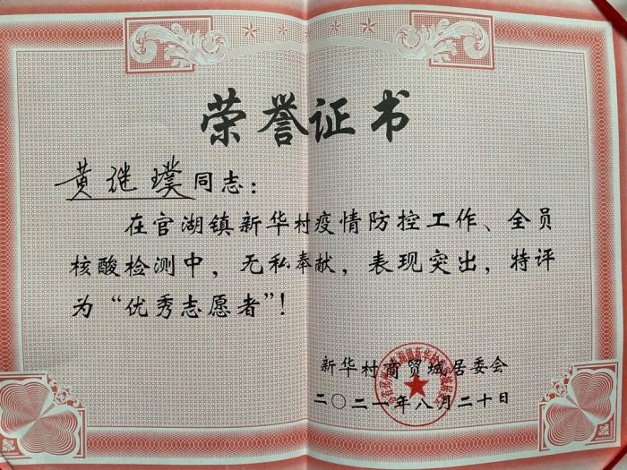 作为一名老员工,19汽修班的黄继璞觉得他在国家有难的时候应该站出来做一名志愿者,他在很小的时候就看见有人无偿献血,在医院里面做志愿服务,为空巢老人打扫房间之类的志愿者,她们无条件的付出着,今天他也来当一名志愿者。因为疫情的持续,村里才有了志愿者的身影,测量体温,登记信息,卡点执勤,在近日的大风中,他们依旧尽职尽责, 坚定的站在疫情防控工作的第一线, 发挥着自己的光和热,他今天来配合村委守护着人民群众的健康安全,成为这特殊时期一道最美的风景,深入这些志愿活动才知平时核酸的志愿者和医护人员的不易。特别是老人家来检测,因着不怎么会使用智能手机和有的只有按键机,对于年轻人来说很简单的事到了他们那里可能会变得困难,不过幸好,还有他们这群青年人去帮助他们。他就主要负责检测和维持场外秩序,因为他家离那边比较远吗?每天就得5:00多起床啊,然后6:00多就开始了,做准备工作穿好防护服。里面都特别特别的们先开空调了,但是还是特别的热。中午11:00休息吧,然后下午3:00接着干,晚上12:00才能结束,回到家洗完澡,差不多也一点多了。人们对这个都还挺积极了,一排就开启大溜的队。就是从工作,一直到结束人就不能停,有的时候晚上12:00结束了,凌晨的时候还有人来。年轻人还好,一点,其他的什么都懂身份证和手机号就可以弄了,主要就是老人。不太会智能手机有的也没手机没有手机号什么的。平时应该对老人家多一丝包容和耐心,因为他们可能都在努力地赶上时代的列车。他还留意到一些做着辛苦职业的人们,比如环卫工人。这让他想起了某国因为没钱做不起核酸的事他们的国家是真的为人民服务,无论是什么阶层,无论你是有钱还是没钱。日常感叹所有的运气都花在了生在中国长在中国。做志愿者,也是因为受到了觉醒年代的影响,突然间就想感受一下当初武汉的众志成城,虽然他不是党员团员只是个群众,但是他作为中国人,他也有那种为人民服务的那种思想觉悟这- -天下来,他体会到志愿者也不是就量个体温,登个记那么简单, 这次活动,让他了解到志愿者服务活动培养他的不仅仅是一-种精神 ,更是培养了自己的极限和耐力,同时也看到自己的潜力。当他们奉献自己一份力量的时候,心里会觉得很幸福,觉得终于为社会做了一点力所能及的事情,他觉得在参加此次志愿活动时,他发现志愿者不是单纯的奉献,他们也可以从活动中学到了很多的东西,教会了他思考人生的态度和看待人生的机会,更加的历练了自己。