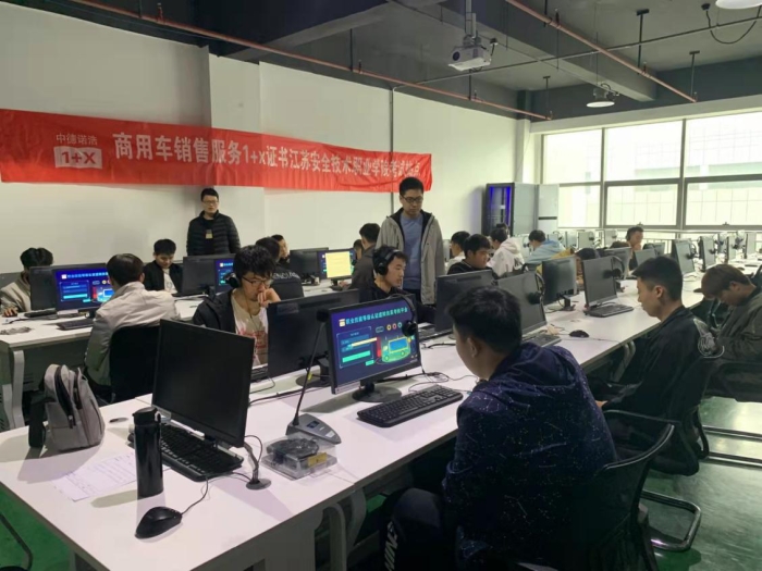 2021年11月5日和6日,交通与安全公司18中德诺浩班22人顺利完成了“商用车销售服务”和“智能网联汽车检测与运维”两个1+X证书项目的考核。