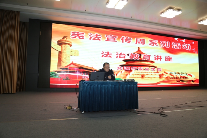 为了宣传法治教育,增强员工的法律意识,交通与安全公司于11月23日下午邀请陈荣海警官在公司老员工活动中心进行了法治教育专题讲座。此次讲座全体20级员工在线上观看,21级员工线下听讲。