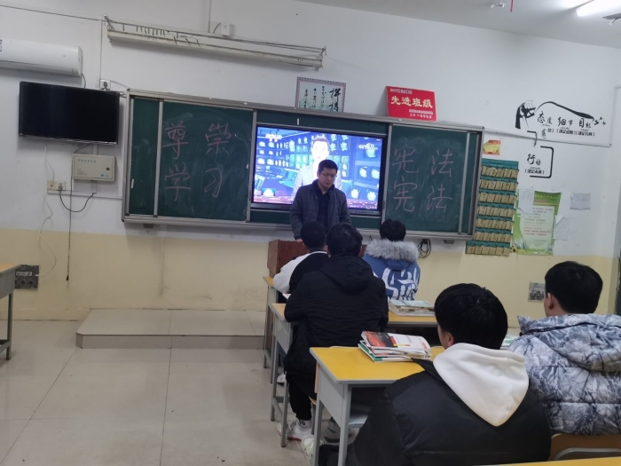 12月4日是国家宪法日,所以在活动之前,学工处为各班提供了关于宪法日的课件、视频、文字等素材。团课上,各班主任老师,团支书讲解了宪法日设立的背景、宪法日设立的内容、意义,带领同学们进一步了解了宪法的基本概况以及在国家政治、经济、文化、社会生活中的重要意义。其间,有些班结合大型法制专题片《法治中国》以及《今日说法》中的视频片段,让同学们更清楚的了解我国的法治进程,特别是近些年来我国法治领域所取得的重大成就。同时,各班还进行了宪法知识竞答活动,大家互动交流,畅谈感想,现场气氛热烈,同学们纷纷表示将继续学习法律知识,约束自己、保护自己、武装自己,争做一名学法、知法、尊法、守法的新时代青年。