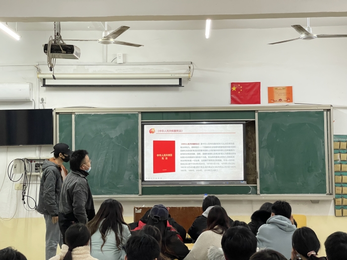 为了培养同学们的法律意识,增强遵纪守法的自觉性和运用法律维护自身合法权益的能力,营造和谐、文明的校园环境。交通与安全公司所有班级于12月1日开展了以“尊崇宪法,学习宪法”为主题的班团课。