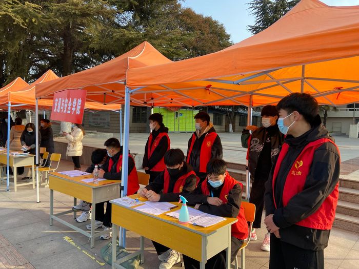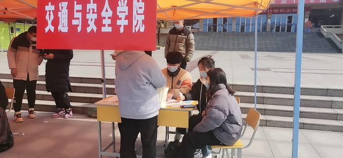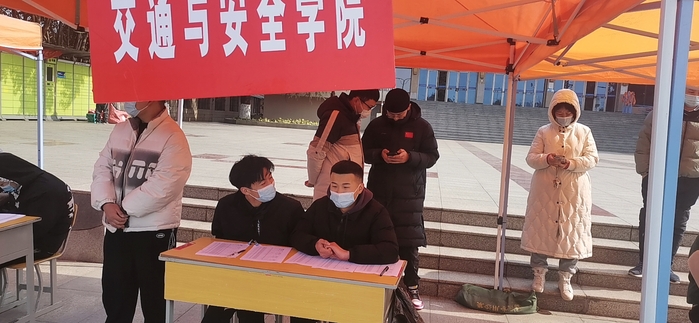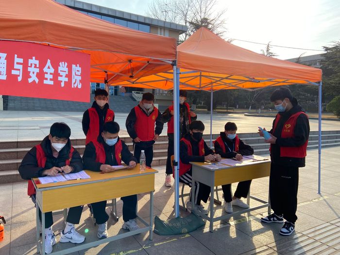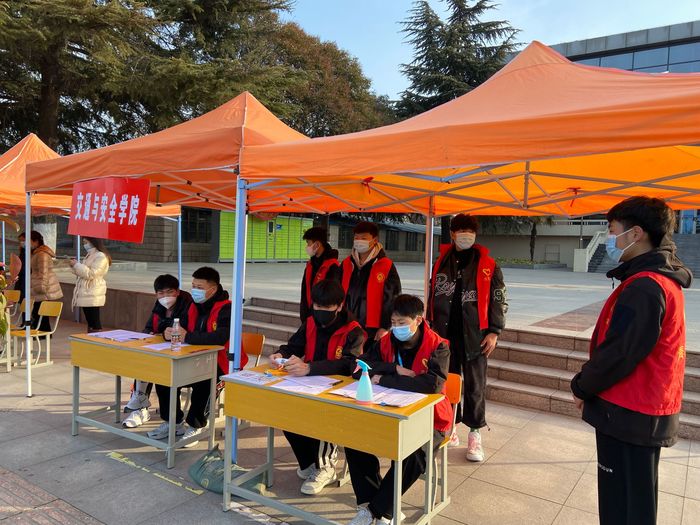 公司志愿者在辅导员高燕和王明瑞老师的带领下,在学管主任邓宝仿的指导下,有序开展员工返校接待工作,查验员工的“两码一书”即健康码、行程码和疫情防控承诺书,测量体温,对行李物品进行消杀工作。